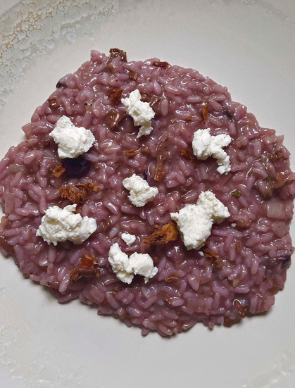 Blueberry Risotto with Chanterelles and Goat Cheese
